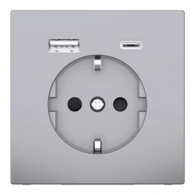 Schneider Electric Merten System Design Socket with USB Connection Type A + C, Schuko Flush Mounted, Protective Contact Socket, Suitable for Smartphone and Tablet, Stainless Steel,