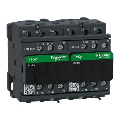Schneider Electric TeSys Deca reversing contactor,3P(3NO),AC 3,=440V 9A,24V AC coil,with mechanical interlocking,LC2D09B7