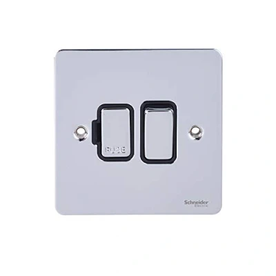 Schneider Electric Ultimate Flat Plate Switched Fused Connection Unit, 13A, GU5210BPC, Polished Chrome with Black Insert