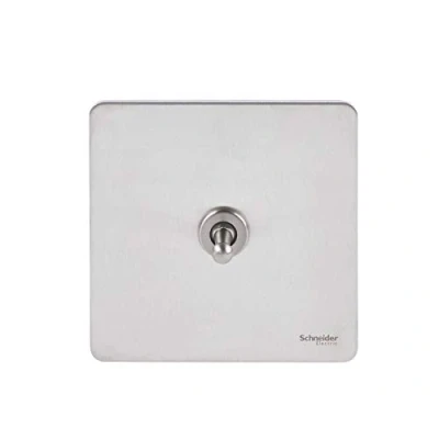 Schneider Electric Ultimate Screwless Flat Plate Single Toggle 2 Way Light Switch, 16AX, GU1412TSS, Stainless Steel