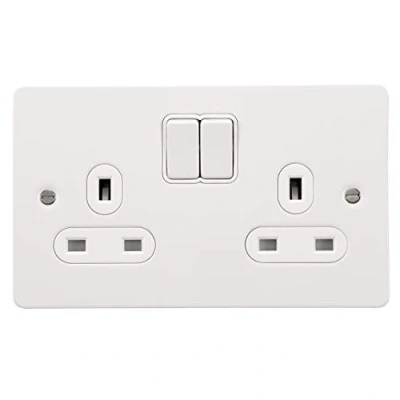 Schneider Electric Ultimate Screwless Flat Plate Switched Double Power Socket, Single Pole, 13A, GU3220WPW, Painted White with Insert