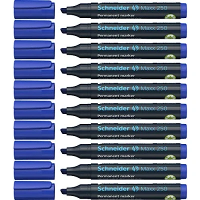 Schneider Permanent Marker 250 Refillable Chisel Tip 2+7 Mm Blue Pack Of 10