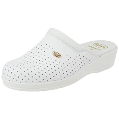 It features an anatomical footbed with a wide fit The perforated upper provides breathability and freshness to the foot throughout the day Suitable for use in: hospital environments, chemists, the hospitality industry, veterinary clinics, dental practices, beauty and hairdressing salons, laboratories, cleaning companies Its excellent 45mm heel height allows for all-day comfort The Clog Backguard is available in two colours: blue and white