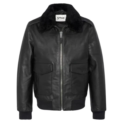 SCHOT LCFLYW22X BLACK SHEEPSKIN NECK PILOT JACKET