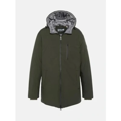 Rib-knit cuffs Fixed adjustable hood Logo patch on sleeve