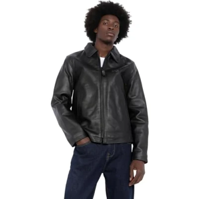100 percent cowhide leather Wollen jacket Fastening: Zipper Long sleeves