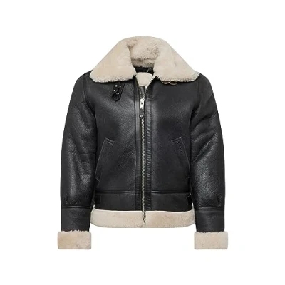 Schott NYC Men's Leather Jacket, Black/Off White, M