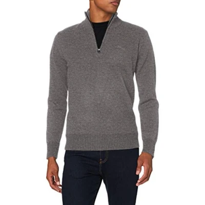Trucker Pullover Zip Collar With collar, waist and cuffs at ribbing, embroidered logo on chest Fit: Comfort 70% Lambswool, 30% Nylon Care: machine washable