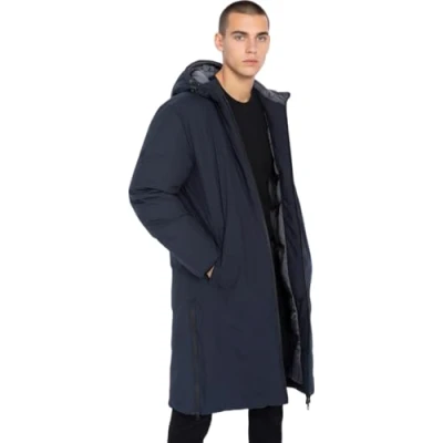 Schott NYC Unisex Fargo Long Down Jacket with Zip, navy, L
