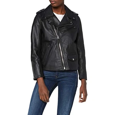 Schott NYC Women's Leather Jacket, Black, L