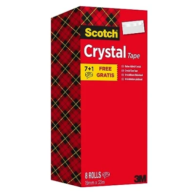 Scotch 19 mm x 33 m Crystal Tape Roll (Pack of 8)