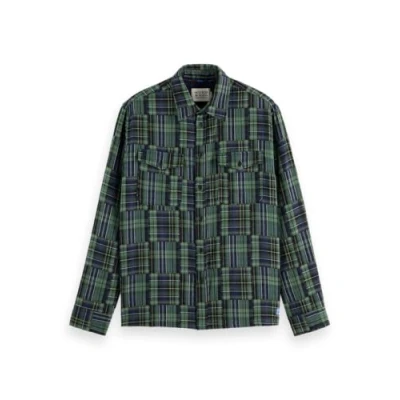 Scotch & Soda Men's Relaxed Fit Patchwork Shirt, Navy Check, S