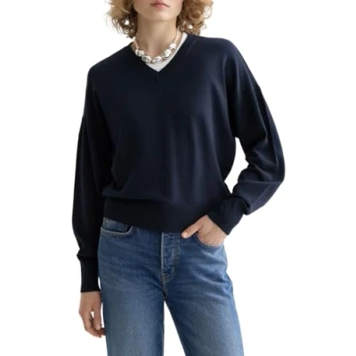 Scotch & Soda Women's Core V Neck Relaxed Pullover Sweater, Night, XL