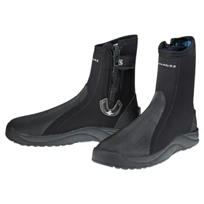 Built to withstand the tough stuff. The boots feature reinforced toes and heels and a solid molded rubber sole. SCUBAPRO The two-sided 6.5mm nylon/neoprene construction and Diamond Span interior lining are durable, comfortable and warm, making it ideal for cold water and harsh conditions. The durable, non-slip rubber sole is safe on smooth boat decks, sharp rocks and rugged surfaces. Scubapro strives to constantly innovate and improve the diving experience, builds high-quality equipment for work, sports and lifestyles of people whose passion can be found beneath the surface. Easily secure the boots with the side zipper and end patch; weighs 1.5 pounds (pair).