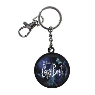 This stylish round metal key ring features the iconic "Corpse Bride" movie logo with a high quality print. It's perfect for fans who want to take a piece of Tim Burton's Gothic masterpiece with them! With its sleek design and durable construction, this keychain is an excellent way to show your love for the movie.