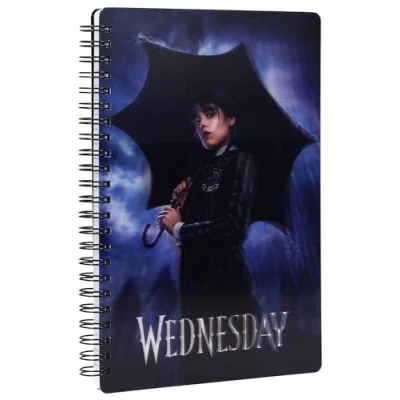 Capture the melancholic essence of Wednesday with our 3D effect pad "Rain". With its image printed under the umbrella, you will immerse yourself in a world full of mystery and beauty. Ideal for taking notes, writing stories or just letting your imagination run wild. Write down the most important thing that happens to you in life in this magnificent spiral notebook from Wednesday The 3D Effect notebook has 4 blank pages and 160 ruled pages (lined)