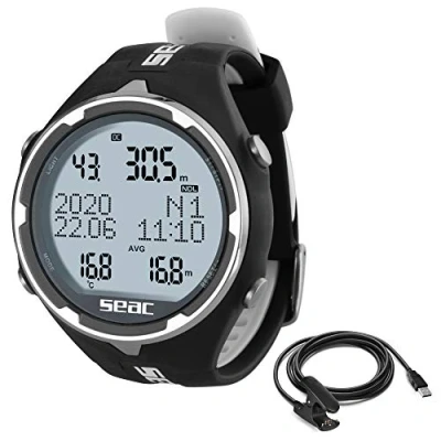 Seac Action, Dive Computer with USB Cable for Scuba and Freediving, Logbook, Planner, Safety Alarms