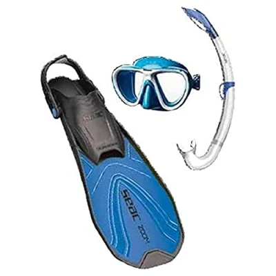 SEAC Zoom Fins, SEAC Elba MD Mask and SEAC MiniFlash Snorkel Kit for Kids The SEAC Zoom snorkel fins for children from size 36 to 38 and are adjustable with a practical 3-position strap The SEAC Elba MD diving mask is designed for children. It is bi-lens with a soft transparent silicone face hypo allergenic The SEAC MiniFlash tube is the scaled-down version of the SEAC Flash tube. It has a mouthpiece made of soft hypo allergenic transparent silicone and at its top end the anti-splash system The SEAC Zoom Set is available in 5 sizes to make snorkeling fun with the whole family