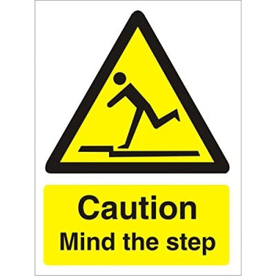 Seco Caution Mind The Step Sign, 200mm x 300mm Self Adhesive Vinyl