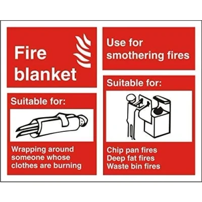 Seco Fire Blanket Explanation Chart Sign, 150mm x 120mm Self Adhesive Vinyl