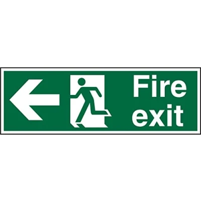 Seco Fire Exit Arrow Pointing Left, Man Running Sign, 450mm x 150mm 1mm Semi Rigid Plastic