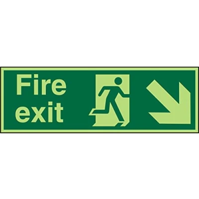 Seco Fire Exit Exit, Man Running Right, Arrow Pointing Down & Right Sign, 300mm x 100mm Photoluminescent 2mm Acrylic
