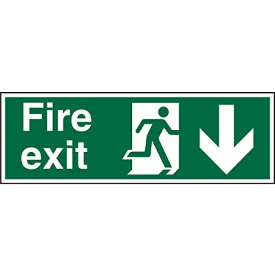 Seco Fire Exit Exit, Man Running Right, Arrow Pointing Down Sign, 300mm x 100mm 2mm Prestige Acrylic
