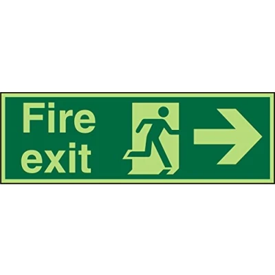 Seco Fire Exit Exit, Man Running Right, Arrow Pointing Right Sign, 600mm x 200mm Photoluminescent 1mm Semi Rigid Plastic