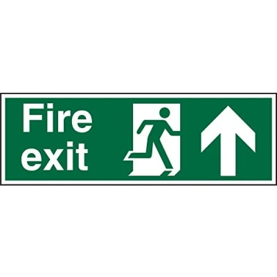 Seco Fire Exit Exit, Man Running Right, Arrow Pointing Up Sign, 450mm x 150mm 1mm Semi Rigid Plastic