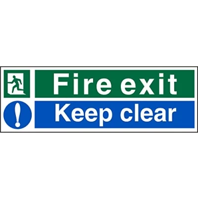 Seco Fire Exit Man Running Left, Exit, Exclamation Mark, Keep Clear Sign, 600mm x 200mm 1mm Semi Rigid Plastic