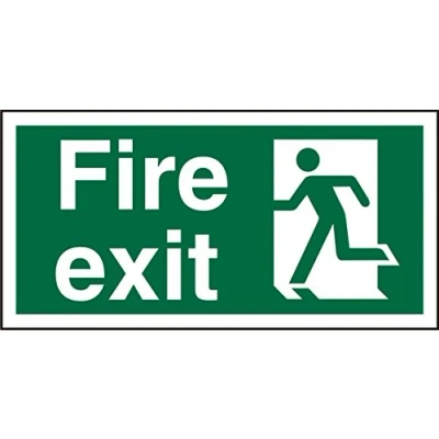 Seco Fire Exit & Man Running Left Sign, 200mm x 100mm Self Adhesive Vinyl
