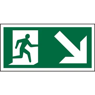 Seco Fire Exit Man Running Right & Arrow Pointing Down Pictogram Sign, 300mm x 150mm 1mm Semi Rigid Plastic