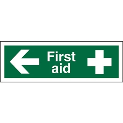 Seco First Aid Arrow Pointing Left, Aid, Cross Sign 300mm x 100mm 1mm Semi Rigid Plastic