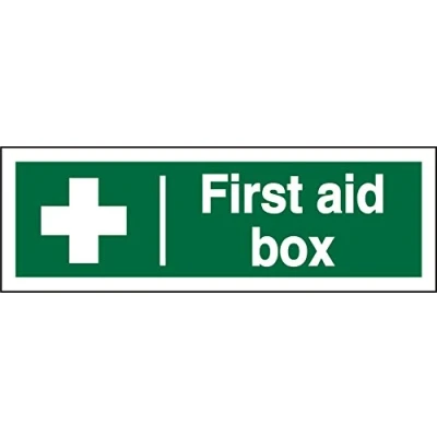 Seco First Aid Box Sign, 300mm x 100mm 1mm Semi Rigid Plastic, White