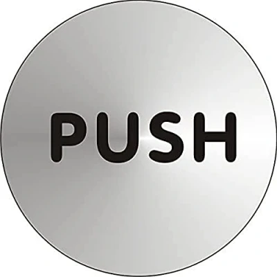 Seco Push Sign, 72mm Diameter 1.2mm Brushed Stainless Steel
