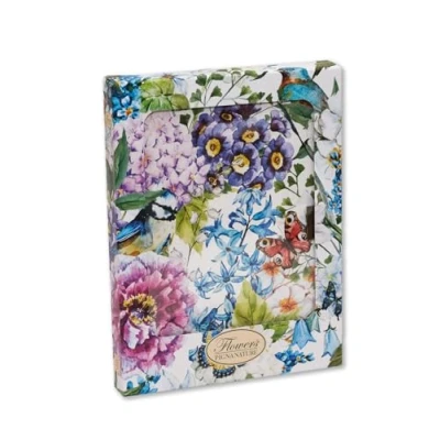 Cardboard cover with floral pattern white background Padlock and brass keys included White interior Size: 15*21cm With bookmark