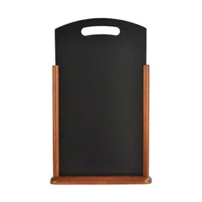 Securit 21 x 45cm Lacquered Finish Elegant Table Top Menu Chalk Board with Handle Dark Brown