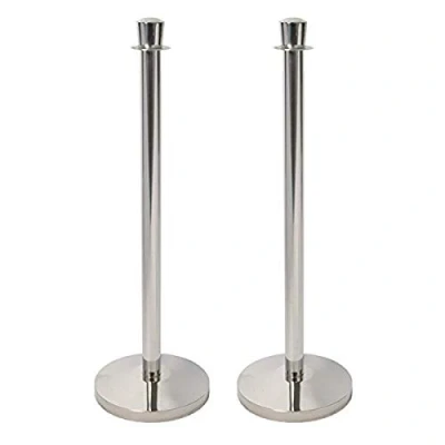 Set of 2 x Chrome indoor / outdoor rope barrier poles Weighted base 1 metre high Made out of all weather polished stainless steel A Securit Budget product Weather resistant Stable 4 connection points 7.5 kg weighted foot on each base