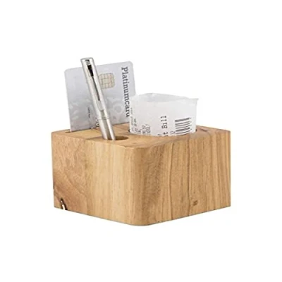 Solid Wooden block Holds pen, credit card & receipt 70 x 80 x 80mm