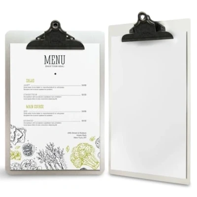 Bring back the good old times with the Securit A4 Vintage Clipboard Menu Holder. The perfect addition to your bar, cafe, diner or restaurant. The clipboard features an extra strong vintage metal patina clip with an embossed "Food & Drink" illustration. Simply replace the menu pages when necessary. The Vintage and eye-catching design with embossed "Food & Drinks" on the clip will definitely be noticed by your customers. Protect your menus from spillages - Easily cleaned with a wipe of a cloth and some soapy water - clean and ready for your next customer.