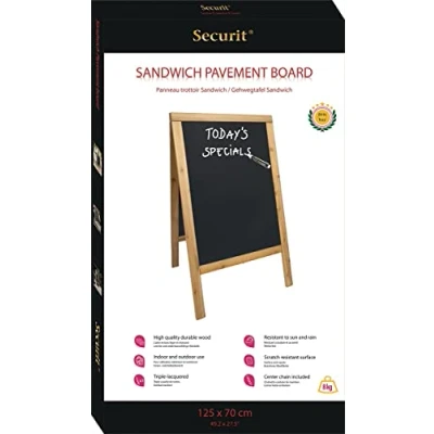 Securit Sandwich Pavement Chalk Board Lacquered Teak Finish, 125 x 70 5 cm