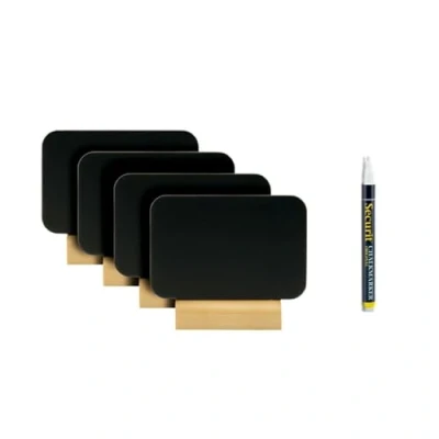 Securit Silhouette Rectangle Mini Chalkboards, Including White Chalkmarker Wooden Base Set of 4