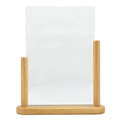 Effective table top information display tool Solid hardwood stand Suitable for indoor and outdoor use Easy to use simply insert information between the vinyl sheets Insert holds A4 poster