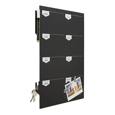 Securit Wall Chalkboard Silhouette Weekly Planner Black Board With Chalk marker Pens, Fixing Velcro & Key Holder, Perfect for Meal Planning