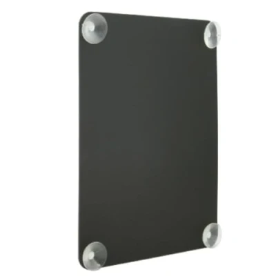 Double sided chalkboard or poster display with four suction cups Made from plastic Available in black colour Measures 27 cm length by 36 cm width by 3 cm height