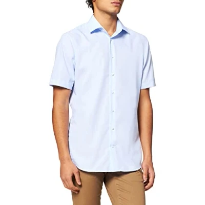 Seidensticker Men's Business Shirt Shaped fit Non Iron Kent Collar Short Sleeves 100% Cotton, Blue (Blue 14), 20