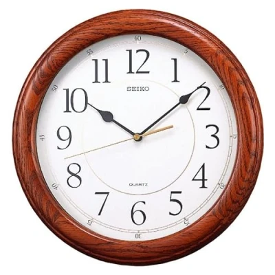 Seiko Dark Brown Solid Oak Wall Clock with Silent Second Hand