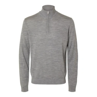 SELECTED HOMME Men's Slhtray Ls Knit Merino Half Zip Noos Pullover Sweater, Medium Grey Melange, L