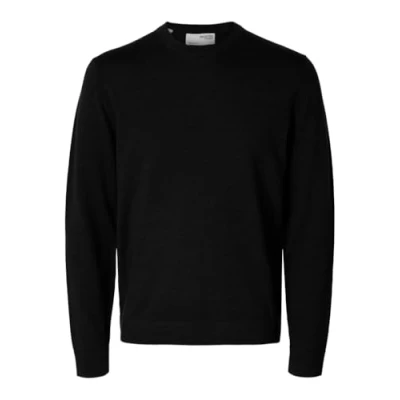 SELECTED HOMME Men's Slhtray Ls Knit Merino Crew Neck Noos Pullover Sweater, Black, M