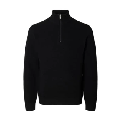 SELECTED MEN Men's Slhross LS Knit Structure Half Zip Noos, black, L